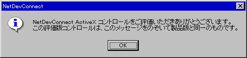 評価版のコントロールはデザイン時および実行時に以下のメッセージを数回出します。